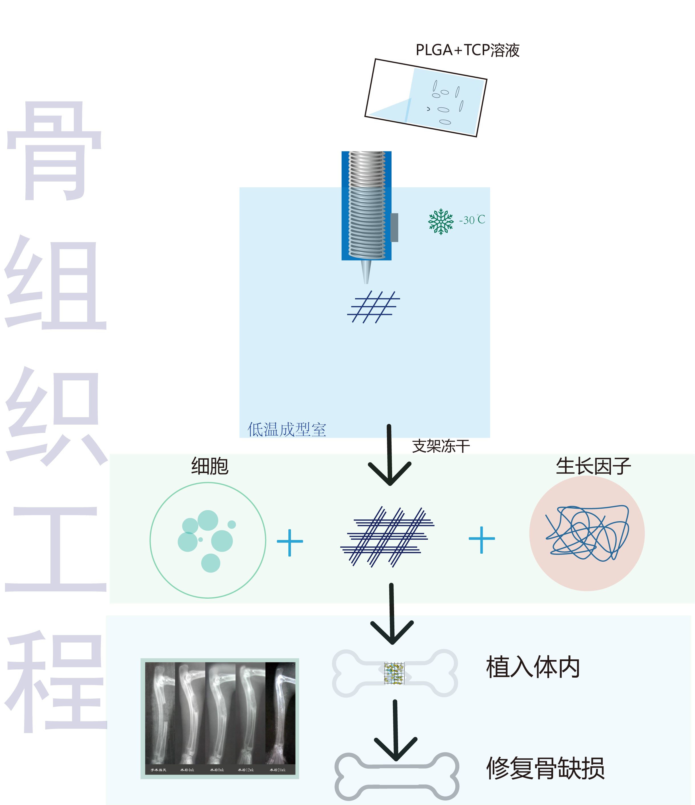 雖然現階段在骨支架的研究已經取得了不小的進展,涉及的領域也更多,但是支架仍然面對力學性能不足,表面親水性仍需提升的問題,還需改善支架結構對細胞增殖分化的誘導性和引導性(支架結構需要更加復雜、仿生)。